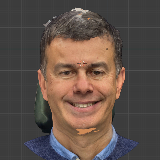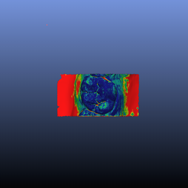 - L’ immagine è ottenuta allineando due mesh ottenute per copia digitale e pertanto identiche. La tecnica di allineamento ICP ottiene quale risultato un allineamento perfetto. In blu sono rappresentati i punti per i quali la discrepanza in termini di allineamento è pari a zero.